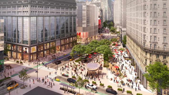 A 2023 rendering of a potential Greeley Square, plans for which the DOT has seemingly abandoned.
